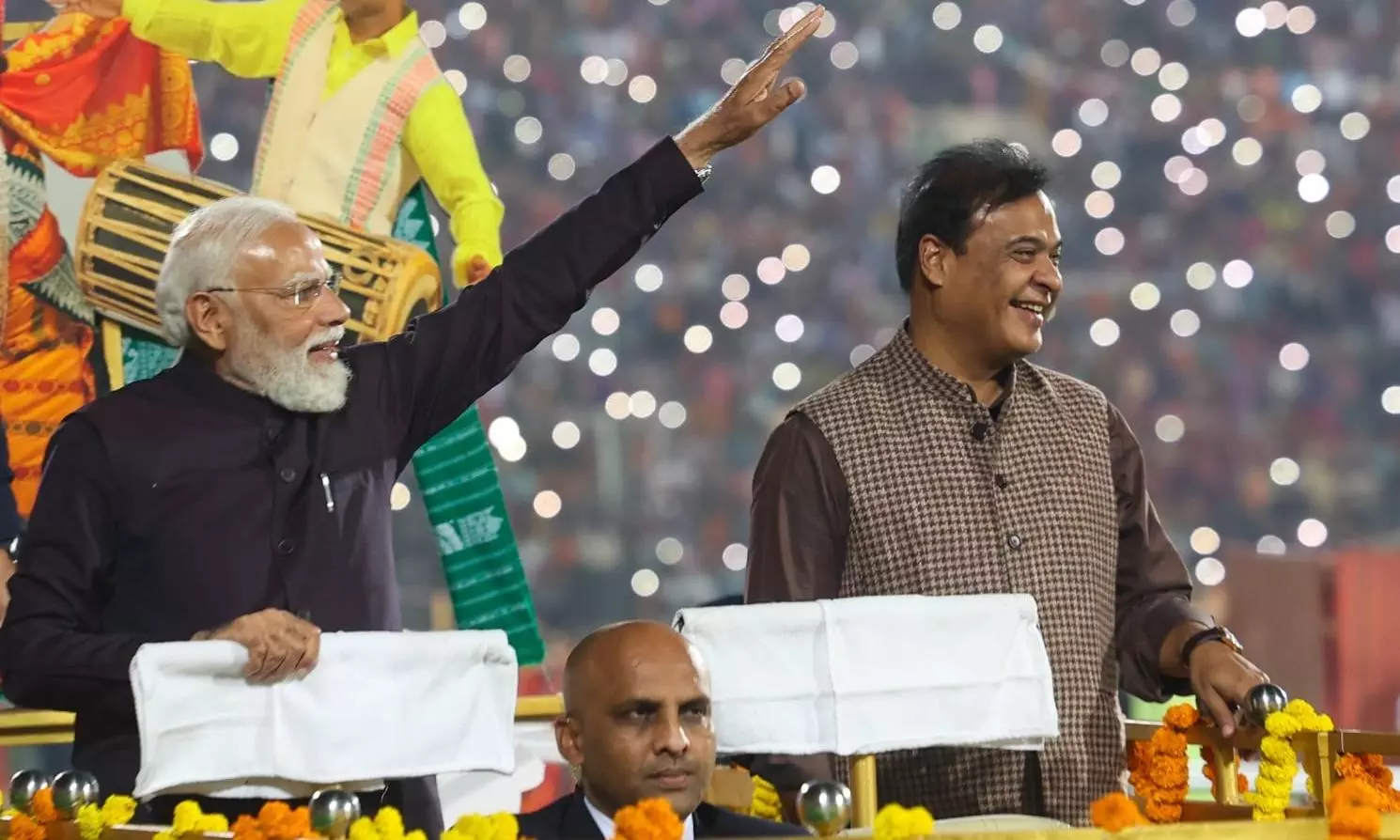 In his utter contempt for Assam's minority community voters, Chief Minister Himanta Biswa Sarma (right) has the full support of his party's higher-ups, including Prime Minister Narendra Modi. File photo: X/@himantabiswa