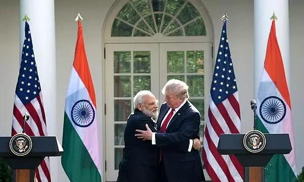 Prime Minister Narendra Modi (left) and US President Donald Trump during a joint press statement at White House, in Washington DC, USA in 2017. Photo: Wikimedia Commons