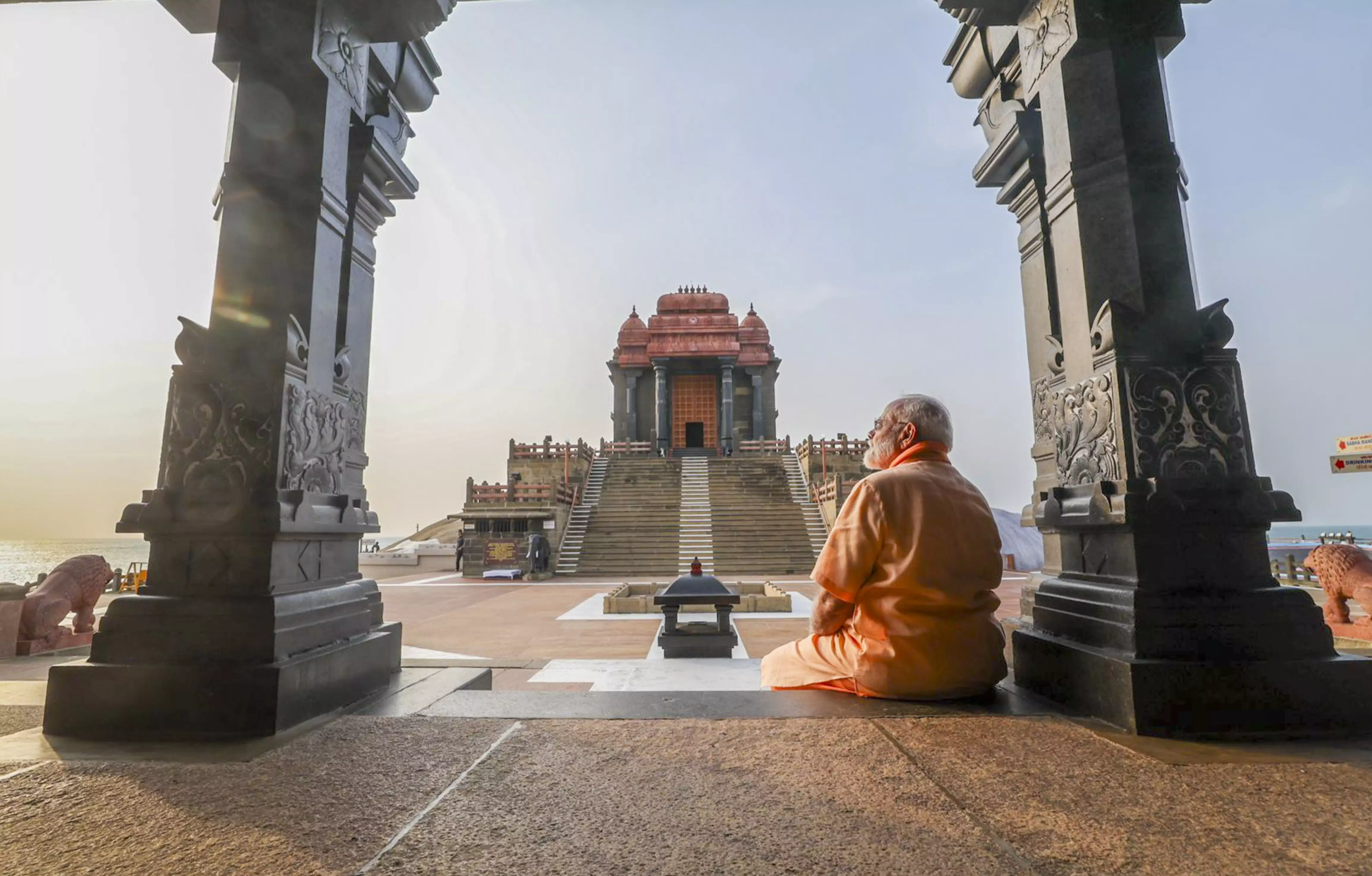 The choice of the rock at the tip of India was ideal, spiritually and symbolically. The rock has other symbolisms as well, not just the connection to Swami Vivekananda. It is also believed to be the place where Goddess Kanyakumari did tapas for Lord Shiva. Since the rock has many such Hindu religious meanings, it was ideal place for Modi to continue with his divinity plans.