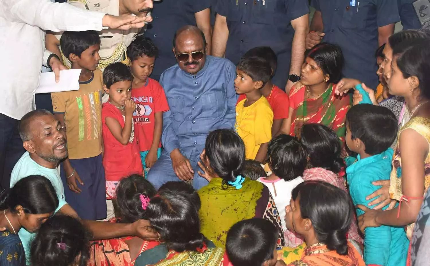 West Bengal Governor CV Ananda Bose meets with villagers displaced by the recent episodes of violence that erupted following protests against the Waqf (Amendment) Act, 2025, at a relief camp at Par Lalpur in Malda, Friday, April 18. PTI