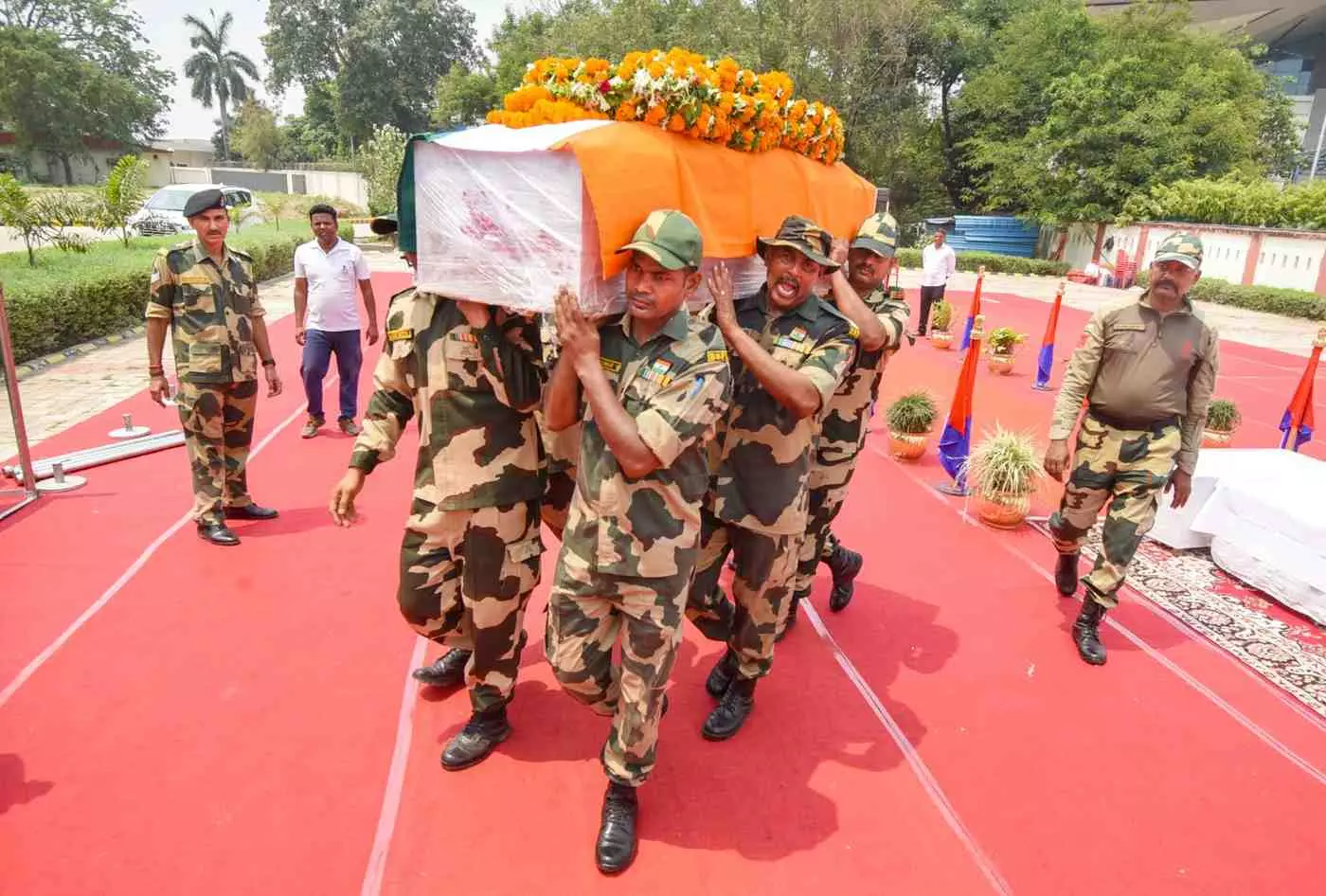 After a guard of honour by security personnel and wreath-laying ceremony at the airport, Imtiaz's body was taken to his village in Saran for the last rites