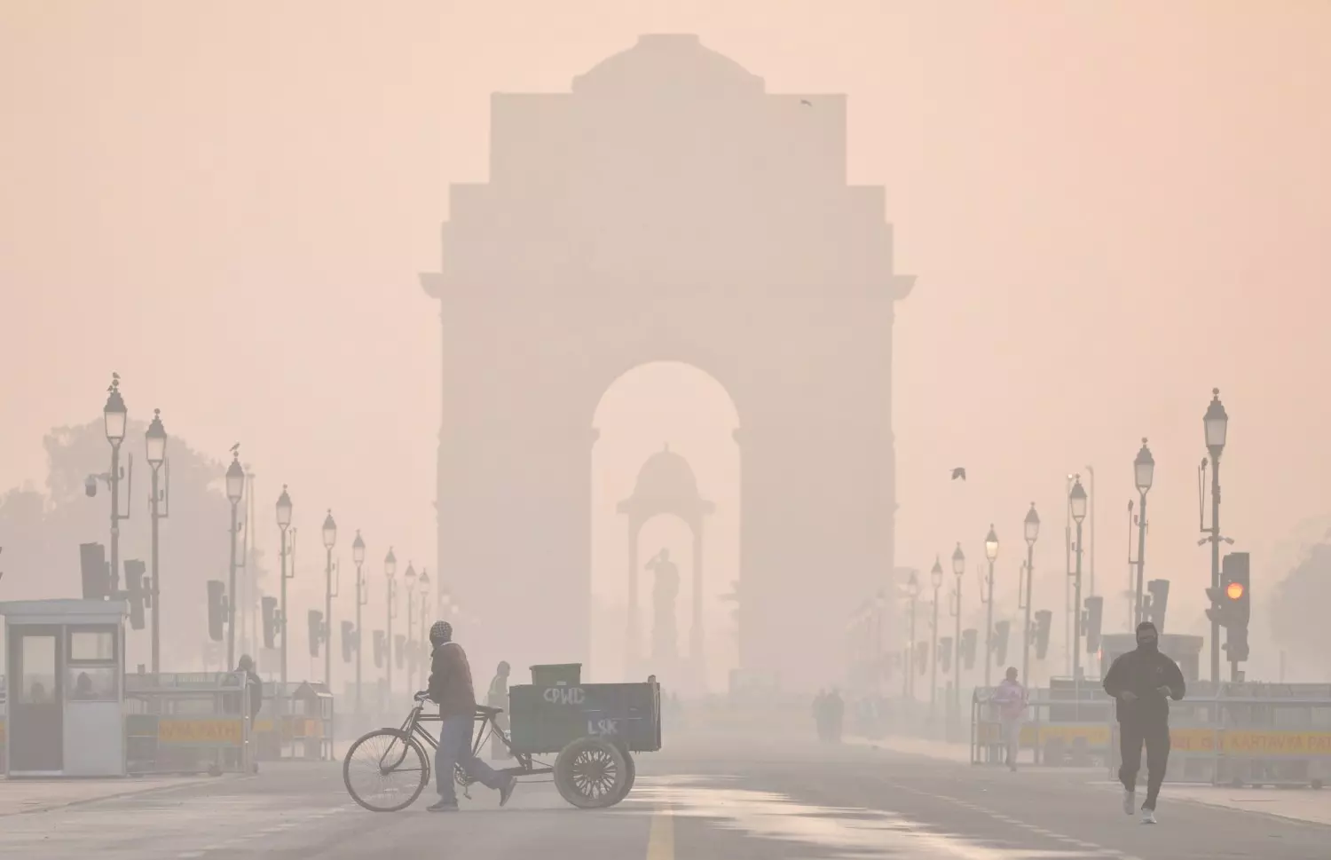 The India Gate shrouded in a layer of smog as people make their way during a cold winter morning, at Kartavya Path, in New Delhi, on December 24, 2025. Photo: PTI