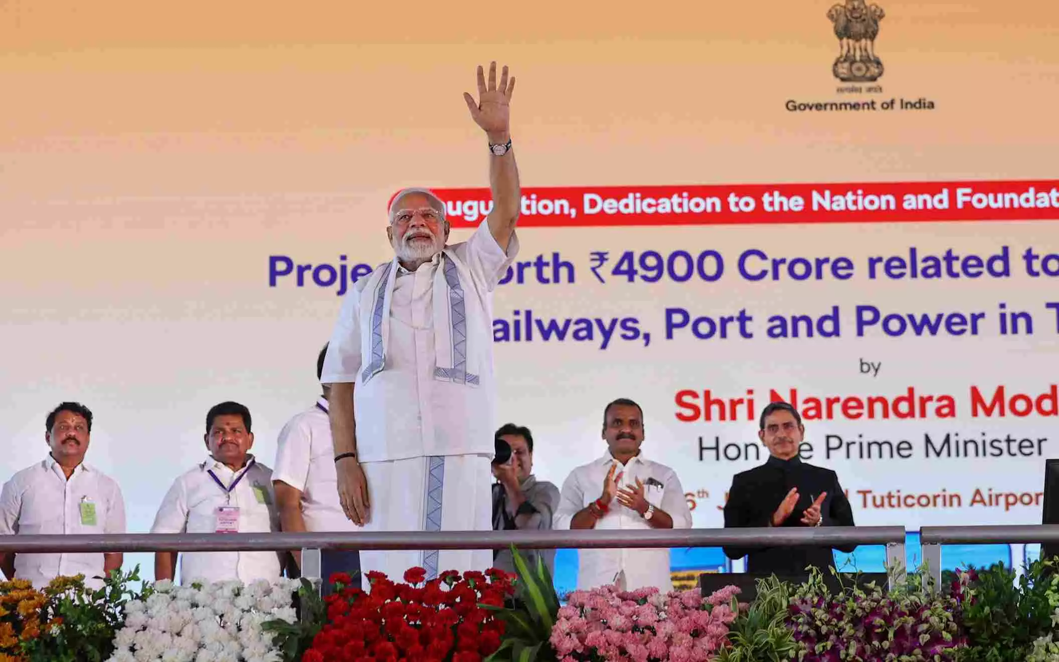 The inaugurated projects include a new state-of-the-art Tuticorin airport terminal building, developed at an estimated cost of around Rs 450 crore