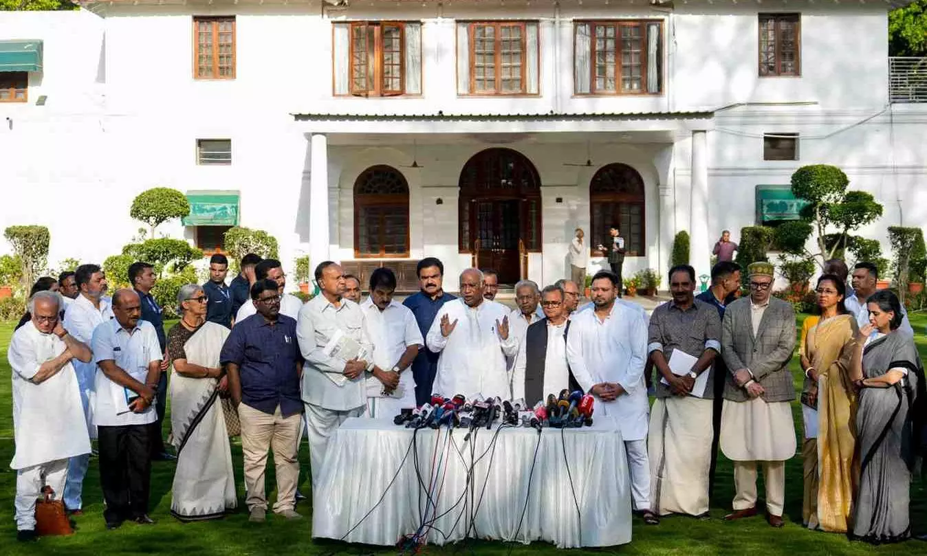 press conference by Mallikarjun Kharge and INDIA bloc leaders